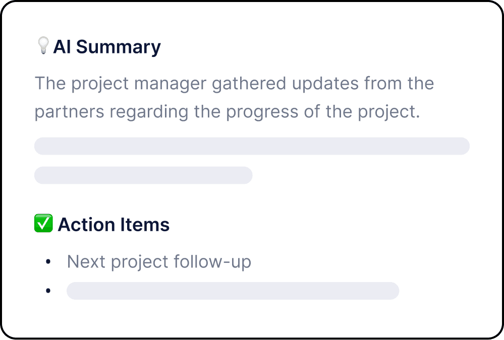Automatically record, transcribe, and summarize your meetings into actionable text, so you can focus more on what matters most: listening and making decisions.